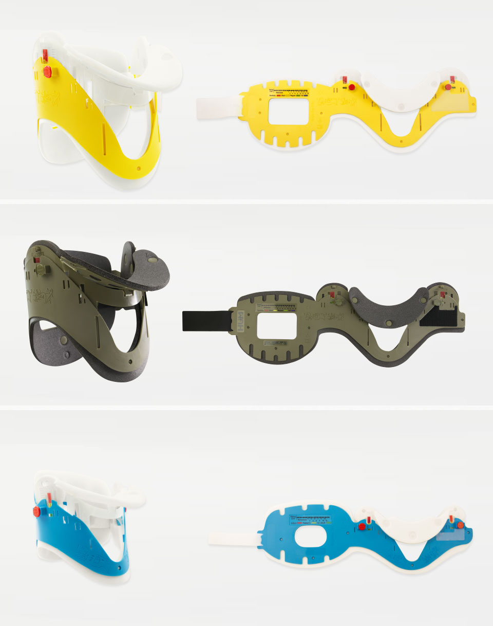 Podesivi cervikalni ovratnik za dojenčad, djecu i male odrasle koji se koristi za sigurnu imobilizaciju vratne kralježnice i nudi jednostavno rukovanje plus visoku stabilnost. 12-struka prilagodba veličine podijeljena u tri dijela, s velikim otvorom za dušnik za upravljanje dišnim putovima i palpaciju. Transport koji štedi prostor zahvaljujući
