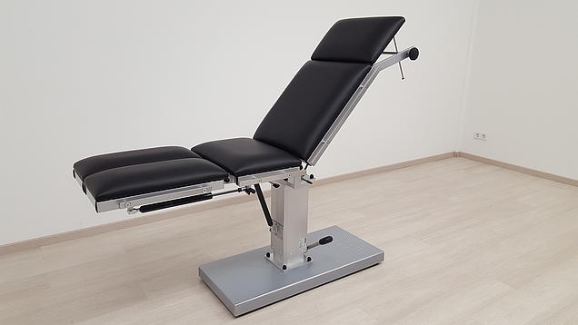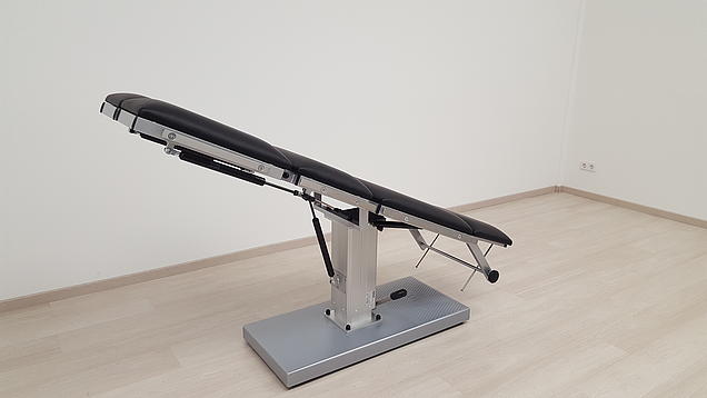 - Svi segmenti presvlake mogu se kontinuirano ručno podešavati pomoću plinskih tlačnih opruga (naslon, sjedalo i dio za noge) ili mehanizmom stezne šipke (dio za glavu). Ova vrsta konstrukcije rezultira iznimno konkurentnom cijenom za stolove AGA-OP-POWER-MAT tvrtke AGA Sanitätsartikel.