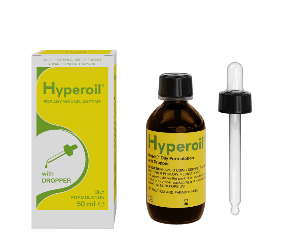 HYPEROIL® je dostupan u GEL i ULJNOJ formulaciji za liječenje raznih ozljeda kože. Aktivni sastojci su više razrijeđeni u GEL formulaciji bez utjecaja na njegovu učinkovitost. Veća koncentracija aktivnih sastojaka u formulaciji ULJA pomaže držati infekcije pod kontrolom, čime se pojačava djelovanje čišćenja/debridmana. Ulje se također preporučuje kada gusta struktura gela ne može doprijeti do područja tretmana. HYPEROIL® je lokalna mast koja potiče zacjeljivanje vanjskih rana.