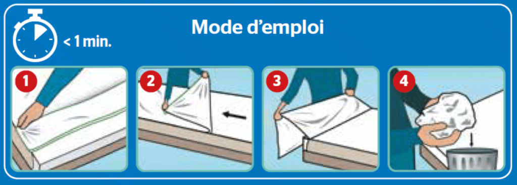 Nakon uklanjanja može se odložiti s kućnim otpadom ili prema važećem protokolu, ostavljajući mjesta za novu čistu plahtu.