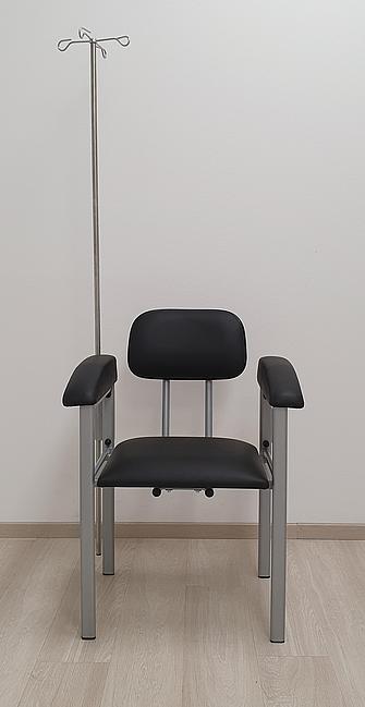 Kako bi se pacijentima omogućilo ugodno i udobno sjedenje tijekom vađenja krvi ili infuzije, stolci su opremljeni ergonomski oblikovanim naslonom. Nasloni za ruke, koji se sužavaju prema naprijed i služe za postavljanje ruke u željeni položaj, te jastuk sjedala također su presvučeni umjetnom kožom otpornom na sredstva za čišćenje i dezinfekciju.