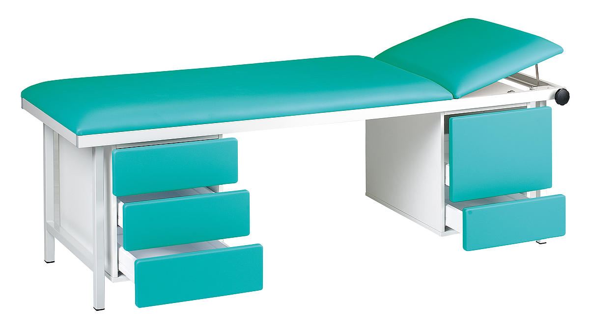 Stolovi za pregled osiguravaju glatko odvijanje ispita držeći često korištene materijale i pomagala uvijek pri ruci. Iz tog razloga AGA Sanitätsartikel nudi stolove za preglede u kombinaciji s mobilnim i visećim ormarićima. Namještaj za sjedenje, kao što su stolci za pregled ili okretni stolci, mogu zaokružiti jedinicu za pregled.