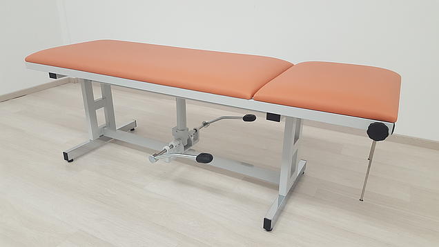 - Hidraulikom upravlja središnje instalirana nožna pumpa. Podešavanje visine može se, naravno, provesti i kod težih pacijenata (do 200 kg) bez većeg napora. Kako biste mogli upravljati hidraulikom s obje strane, moguće je ugraditi dodatnu nožnu polugu. Ovo je dostupno uz nadoplatu (Br. artikla: FPH-10).